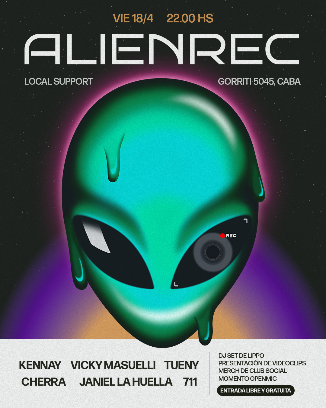 Creación de un logo ilustrado para alienrec, un evento mensual que reúne a diversos artistas musicales. El diseño, pensado para destacar en redes sociales y piezas promocionales, combinó un estilo distintivo con elementos que refuerzan la identidad del ciclo. Además, se desarrollaron posters para cada edición, manteniendo una estética coherente que favorece el reconocimiento del evento.