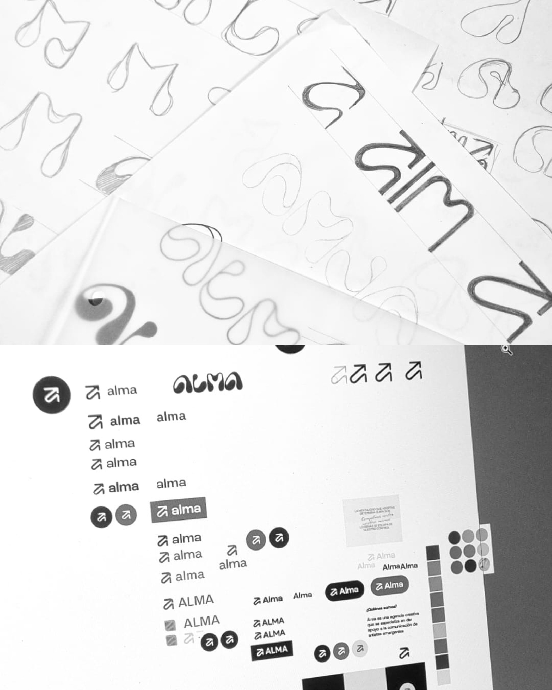 Creación de identidad visual para Alma, agencia dedicada a potenciar a artistas, espacios culturales y miembros de la industria del arte y la cultura a través de la comunicación, la publicidad y la prensa.